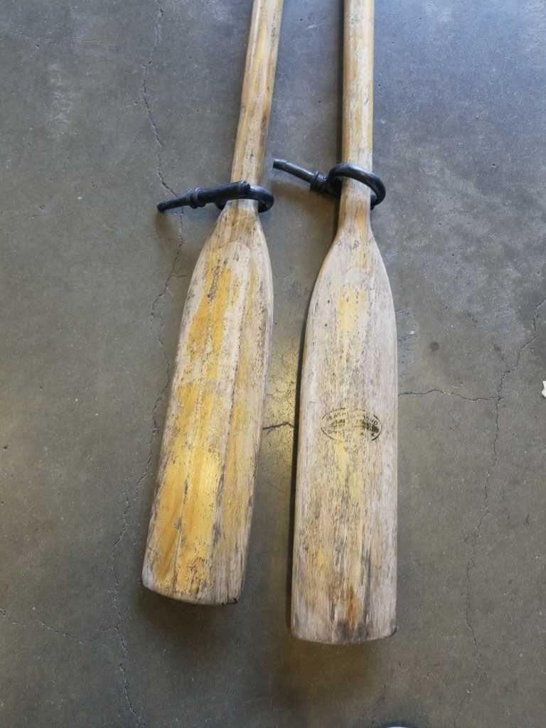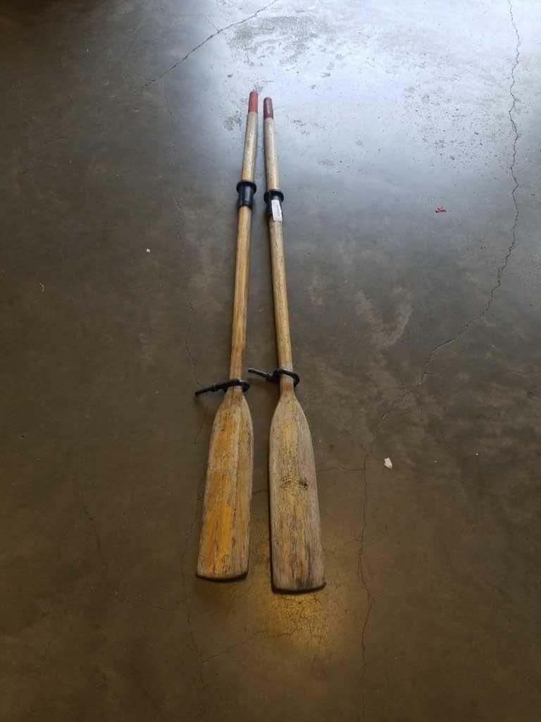 PAIR OF 6FT CAVINESS BOAT OARS WITH SCOTTY OAR LOCKS