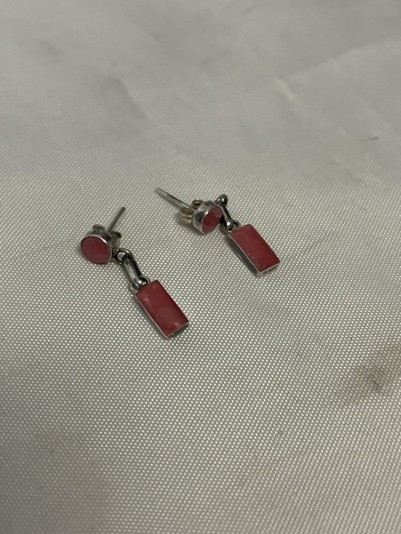 PAIR OF 950 STERLING SILVER W/ PINK JADE STONES EARRINGS