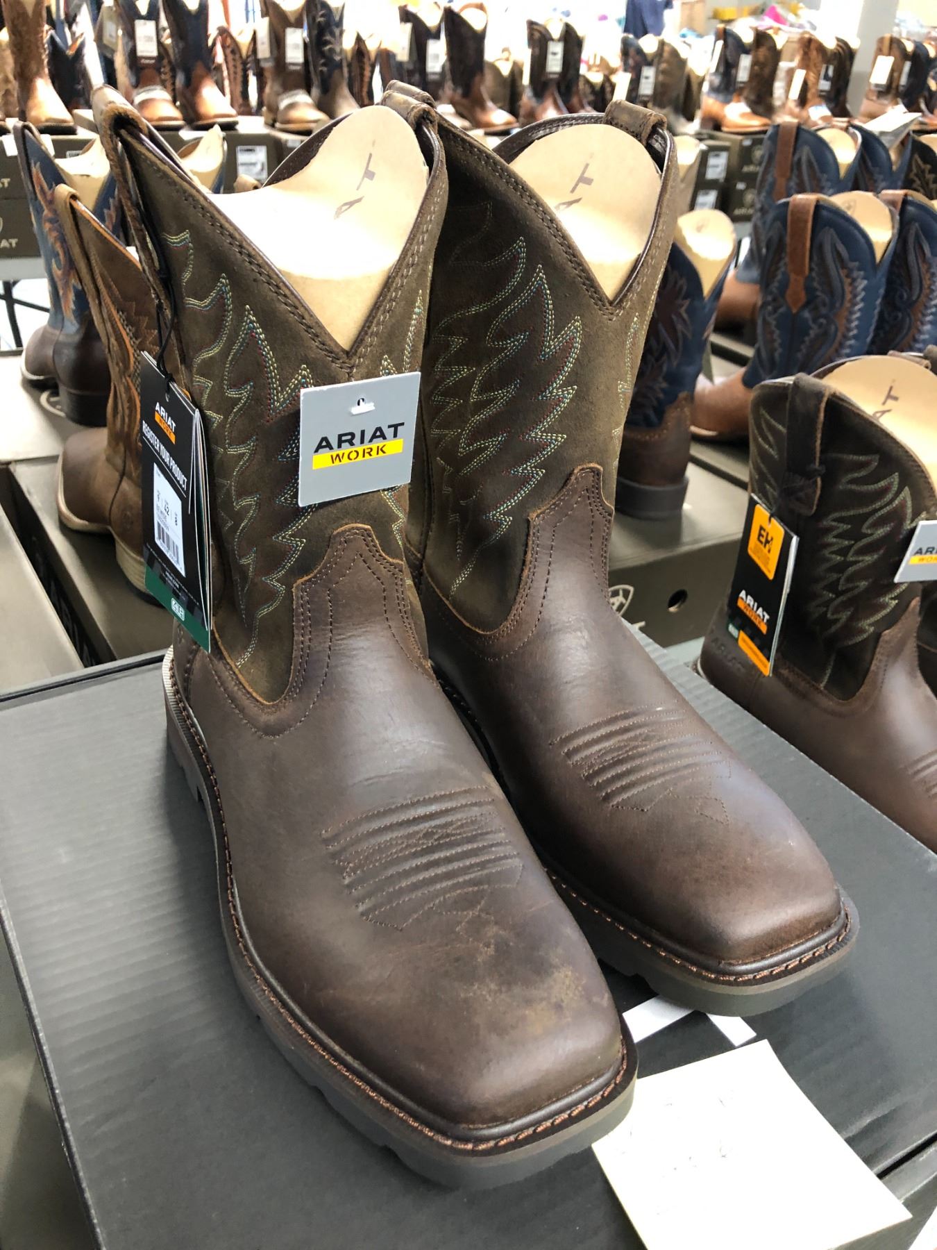 PAIR OF ARIAT MENS SIZE 9, EE WIDE COWBOY WORK BOOTS
