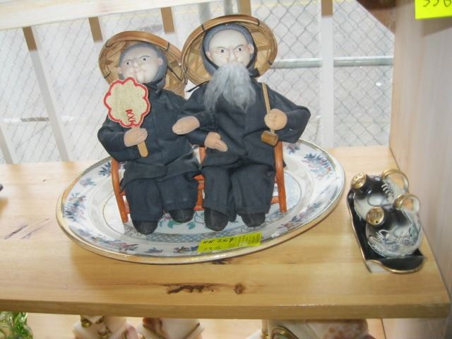 PAIR OF ASIAN FIGURINES, PLATE & S&P