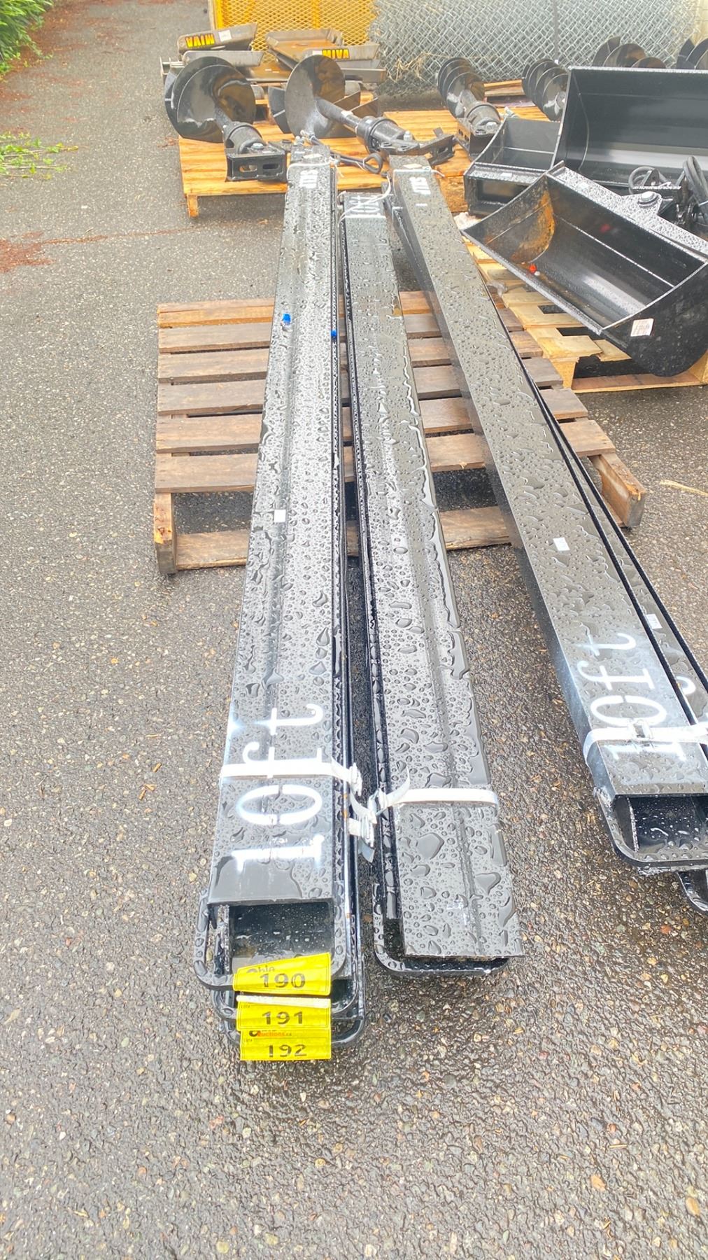 PAIR OF BLACK METAL INDUSTRIAL 10' FORKLIFT FORK EXTENSIONS