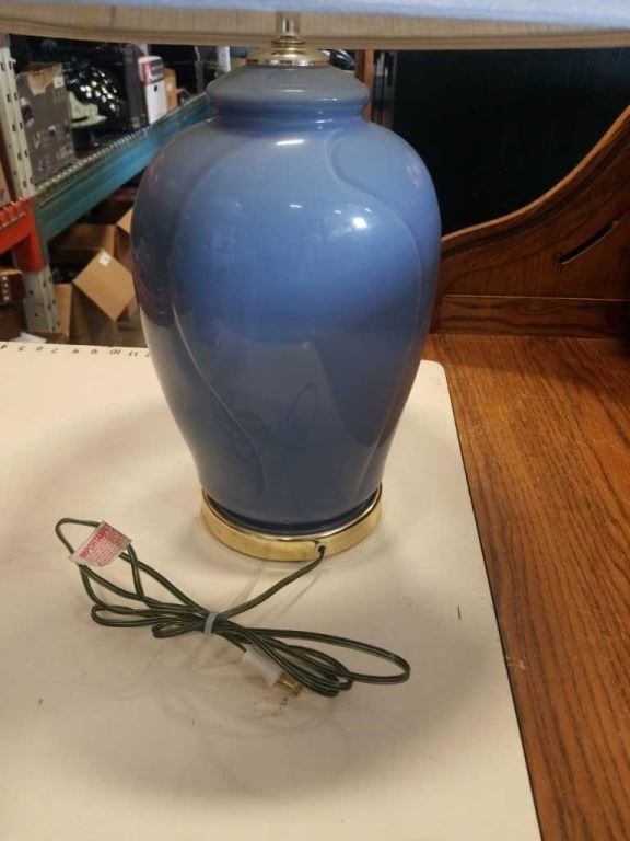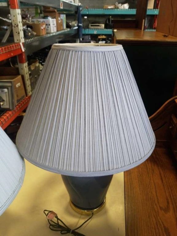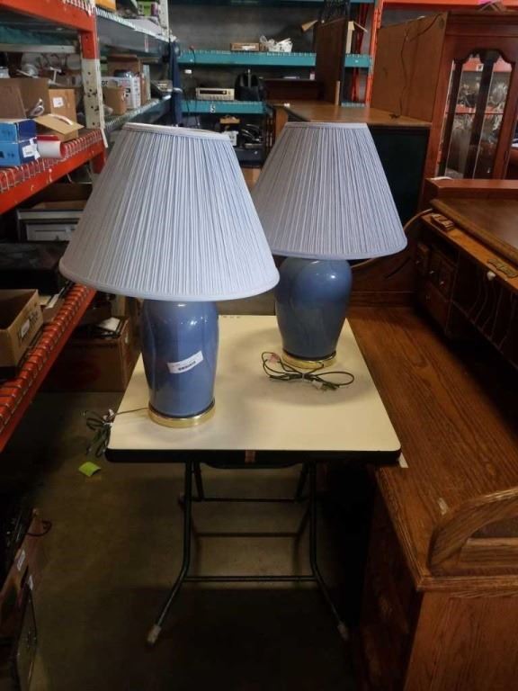 PAIR OF BLUE CERAMIC TABLE LAMPS