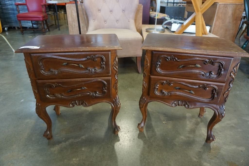 PAIR OF CARVED WOOD 2 DRAWER NIGHTSTANDS