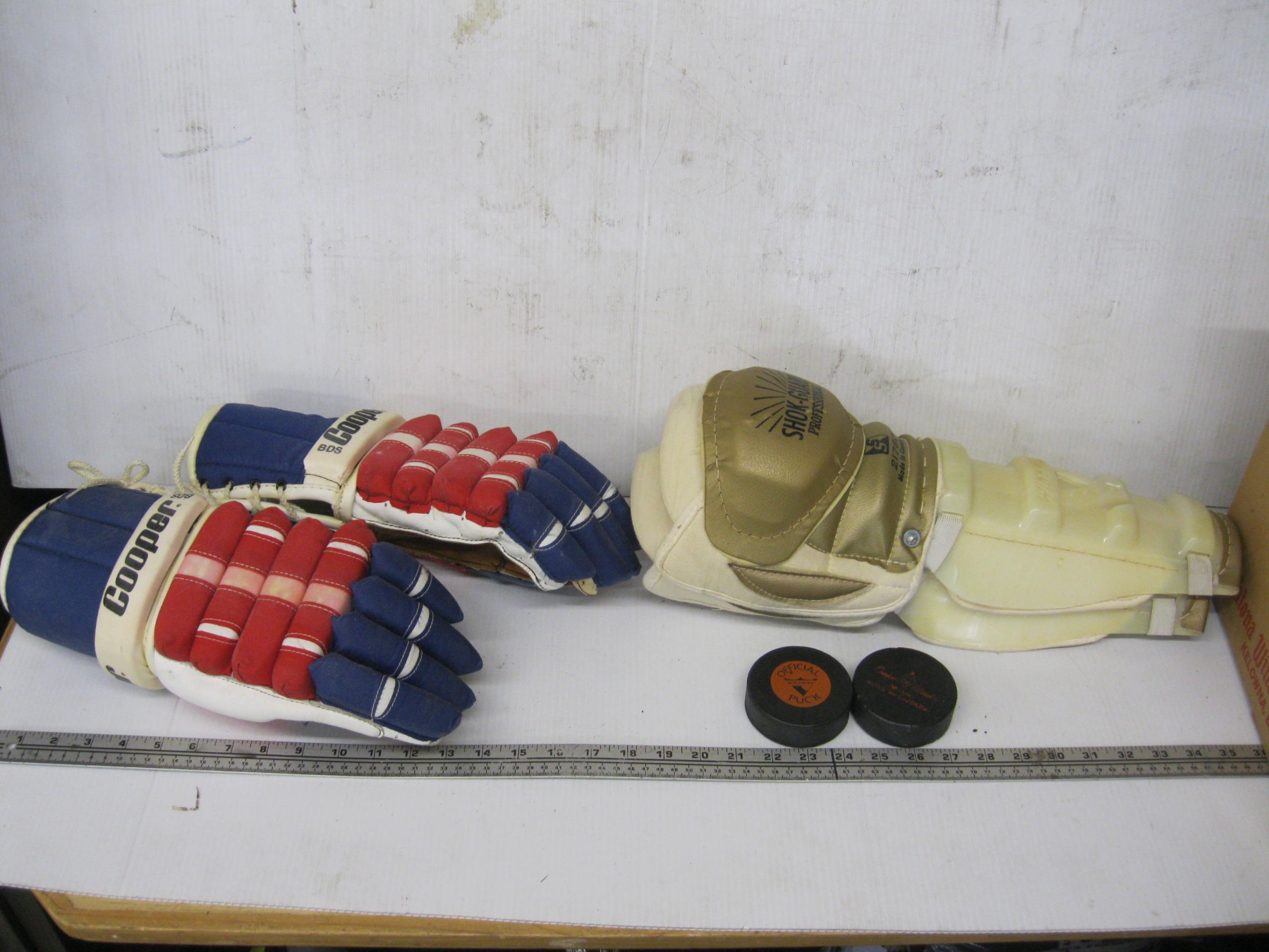 PAIR OF COOPER HOCKEY GLOVES & SHINPADS