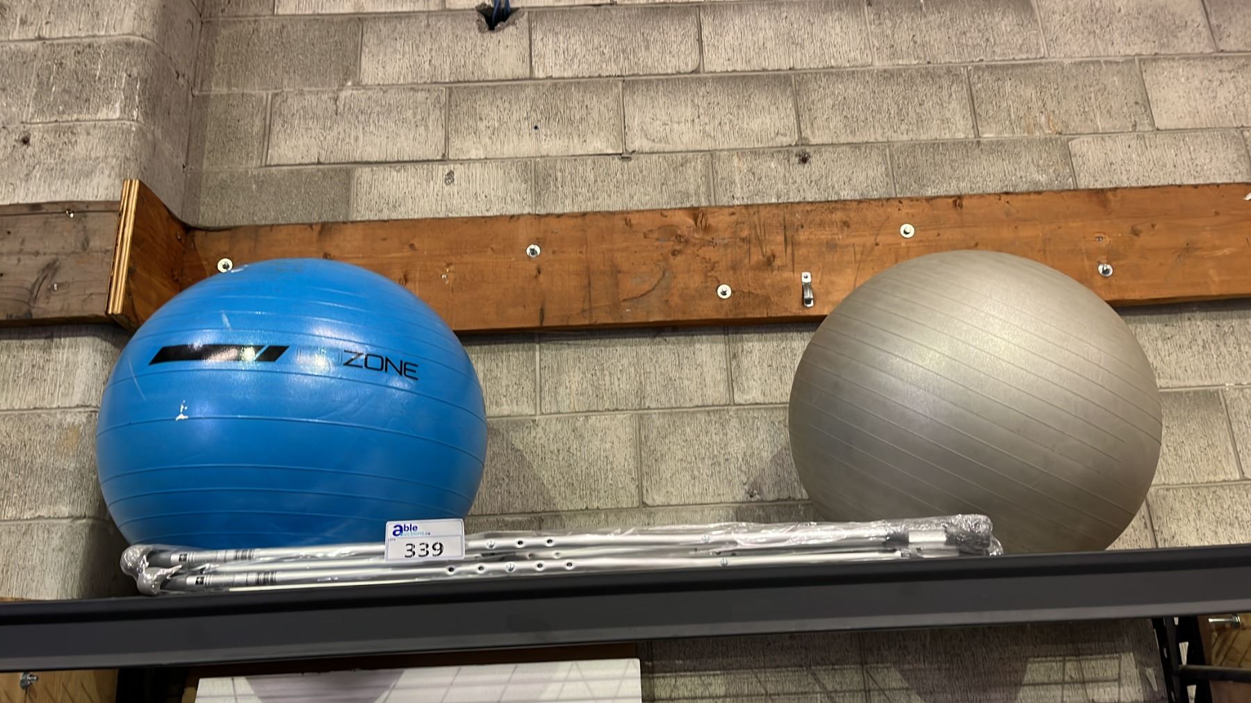 PAIR OF CRUTCHES & 2 EXERCISE BALLS