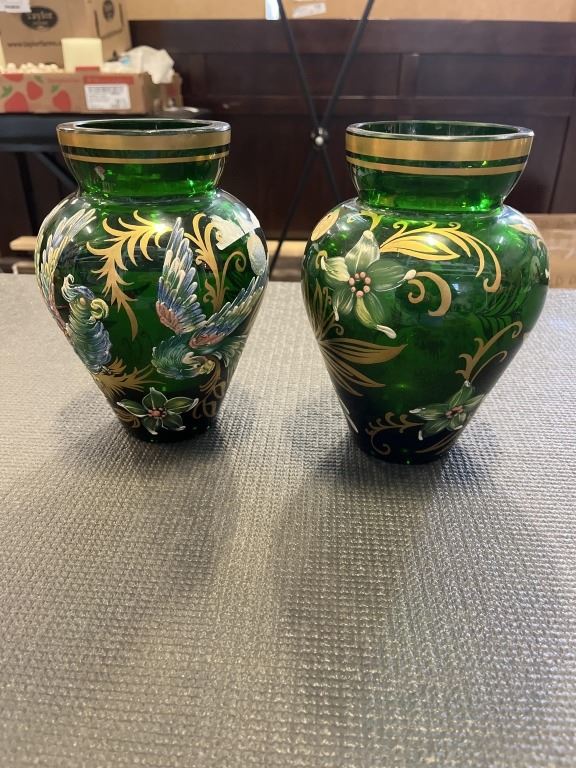 PAIR OF CZECHKOSLOVAKIAN HIGHLY ENAMLED SIGNED VASES (ORIGINAL LABELS)