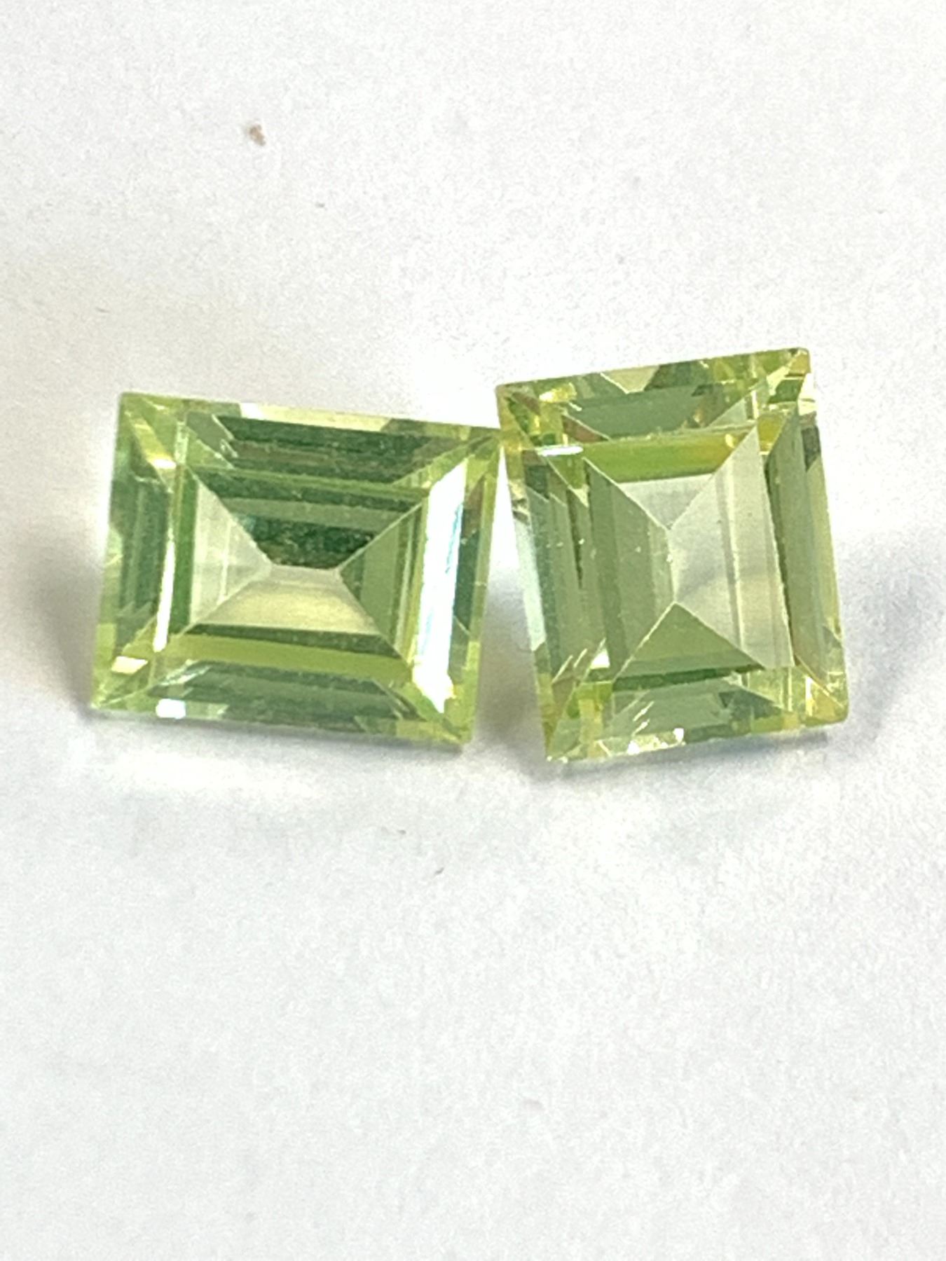 PAIR OF EMERALD CUT PALE LEMON LAB GROWN SPINEL 14.25CT