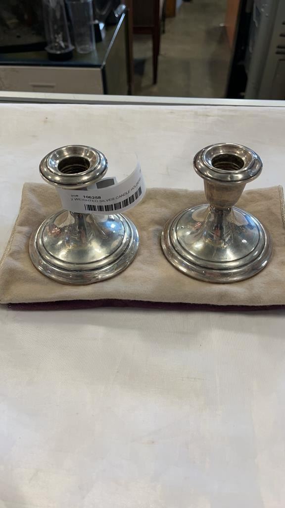 PAIR OF EMPIRE STERLING WEIGHTED CANDLE STANDS