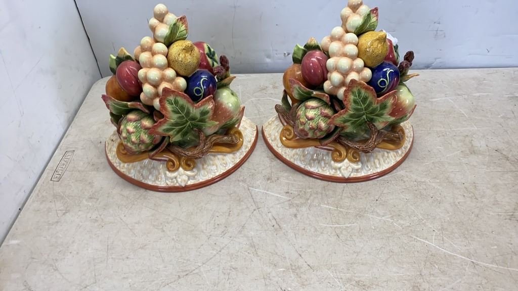 PAIR OF FITZ AND FLOYD PORCELAIN WALL LOOSE LEAF SCOUNCES