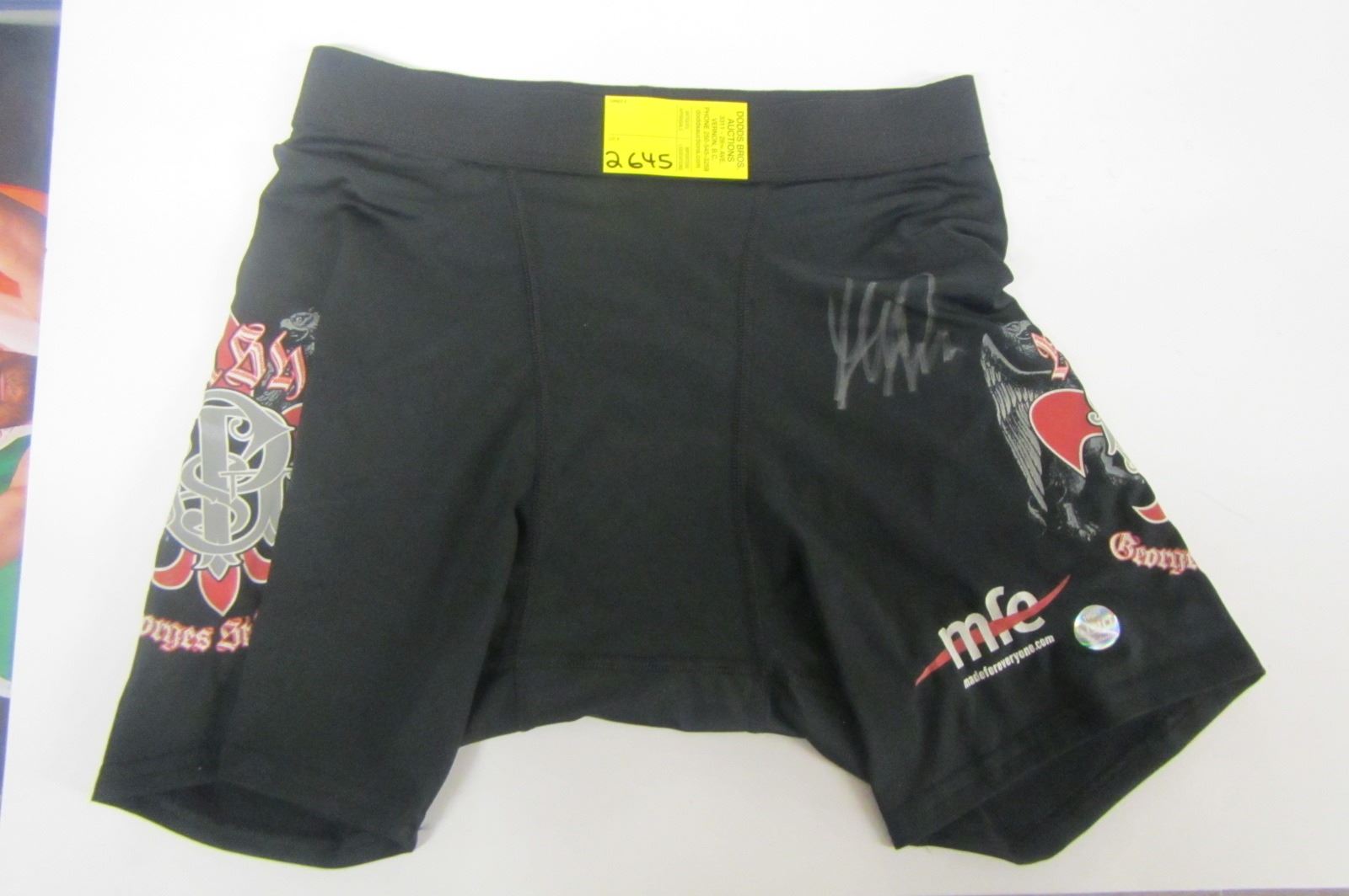 PAIR OF GEORGE ST. PIERRE SIGNED SPANDEX FIGHT SHORTS