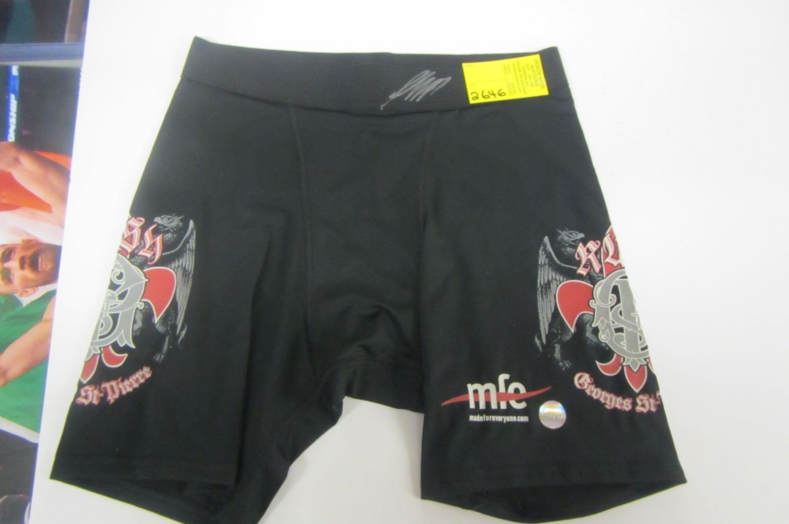 PAIR OF GEORGE ST. PIERRE SIGNED SPANDEX FIGHT SHORTS