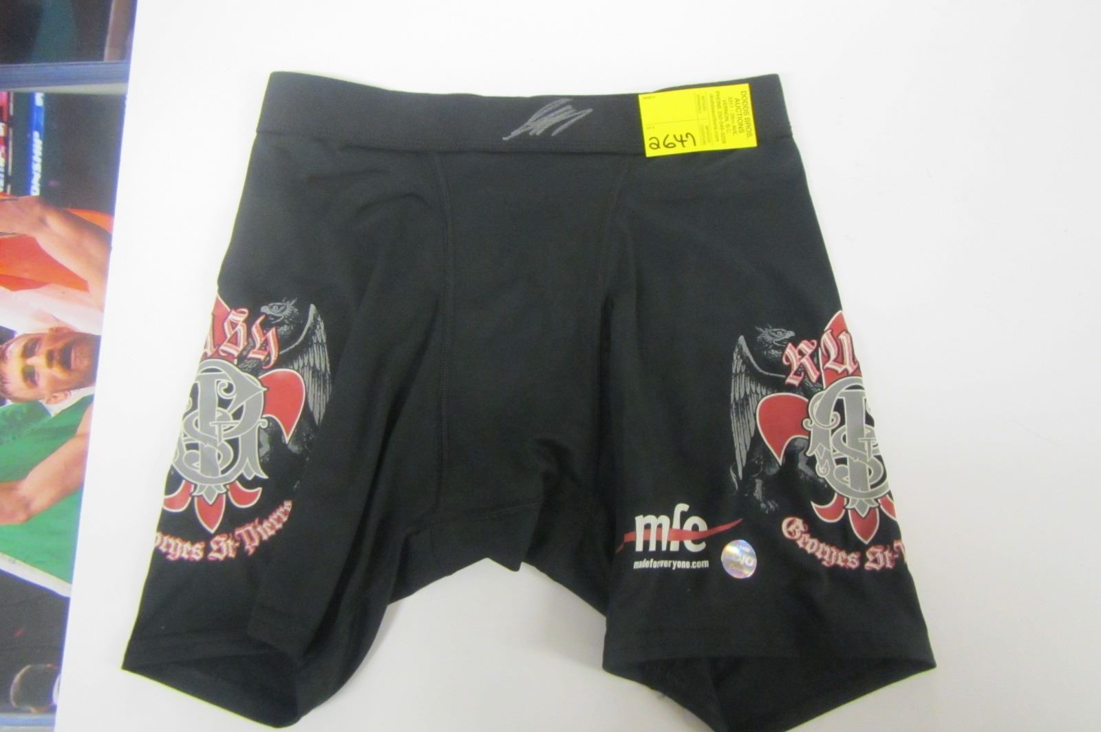 PAIR OF GEORGE ST. PIERRE SIGNED SPANDEX FIGHT SHORTS