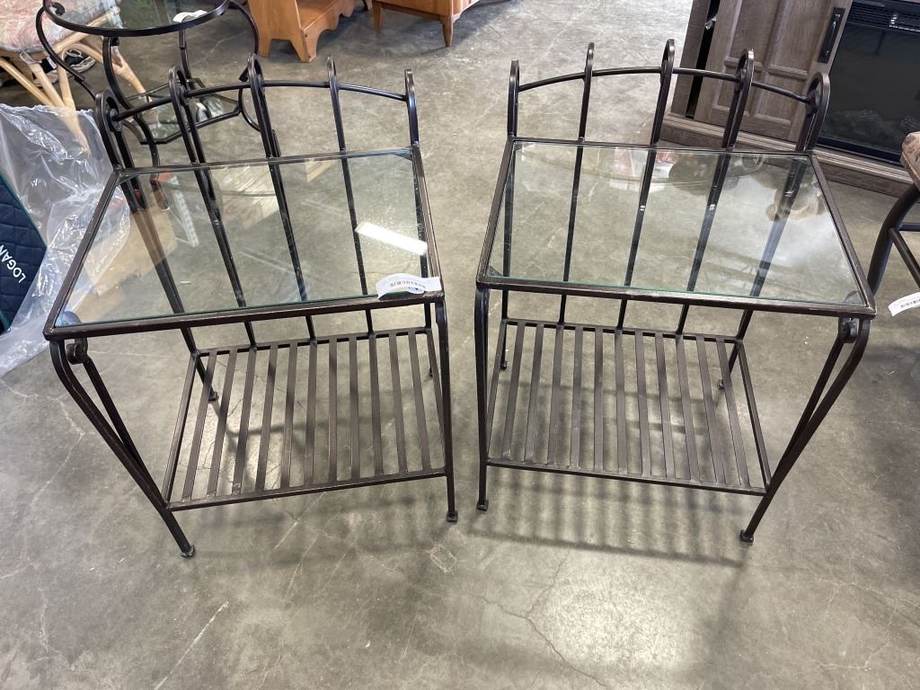 PAIR OF GLASS TOP MODERN SIDE TABLES