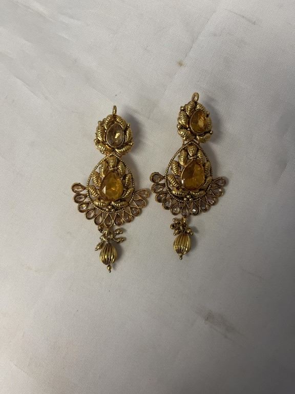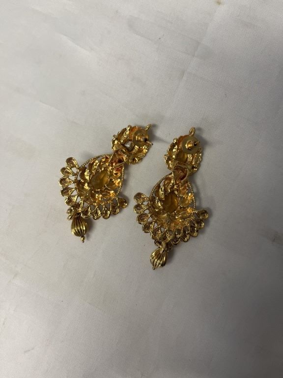 PAIR OF GOLD COLOUR W/ STONES DANGLE EARRINGS