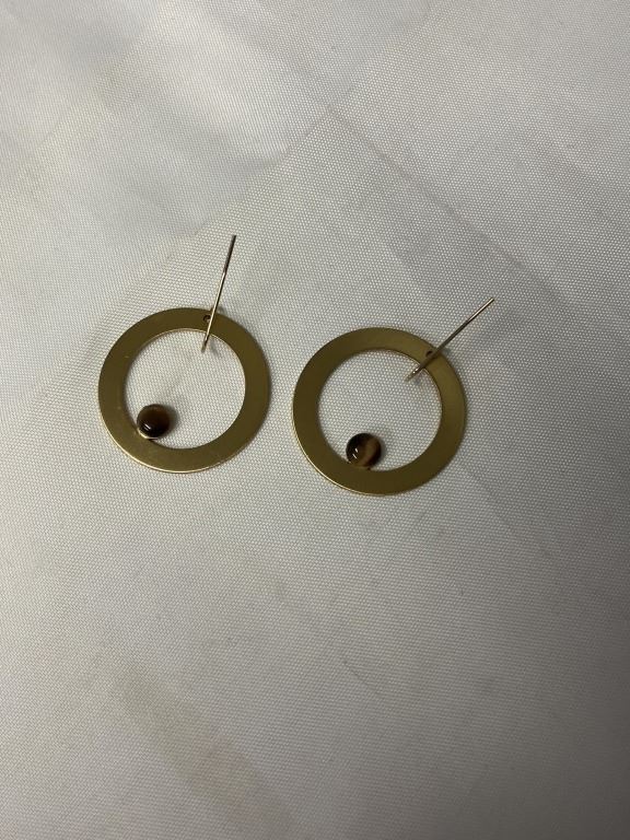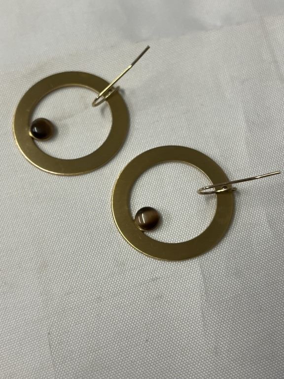 PAIR OF GOLD W/ TIGERS EYE STONE EARRINGS