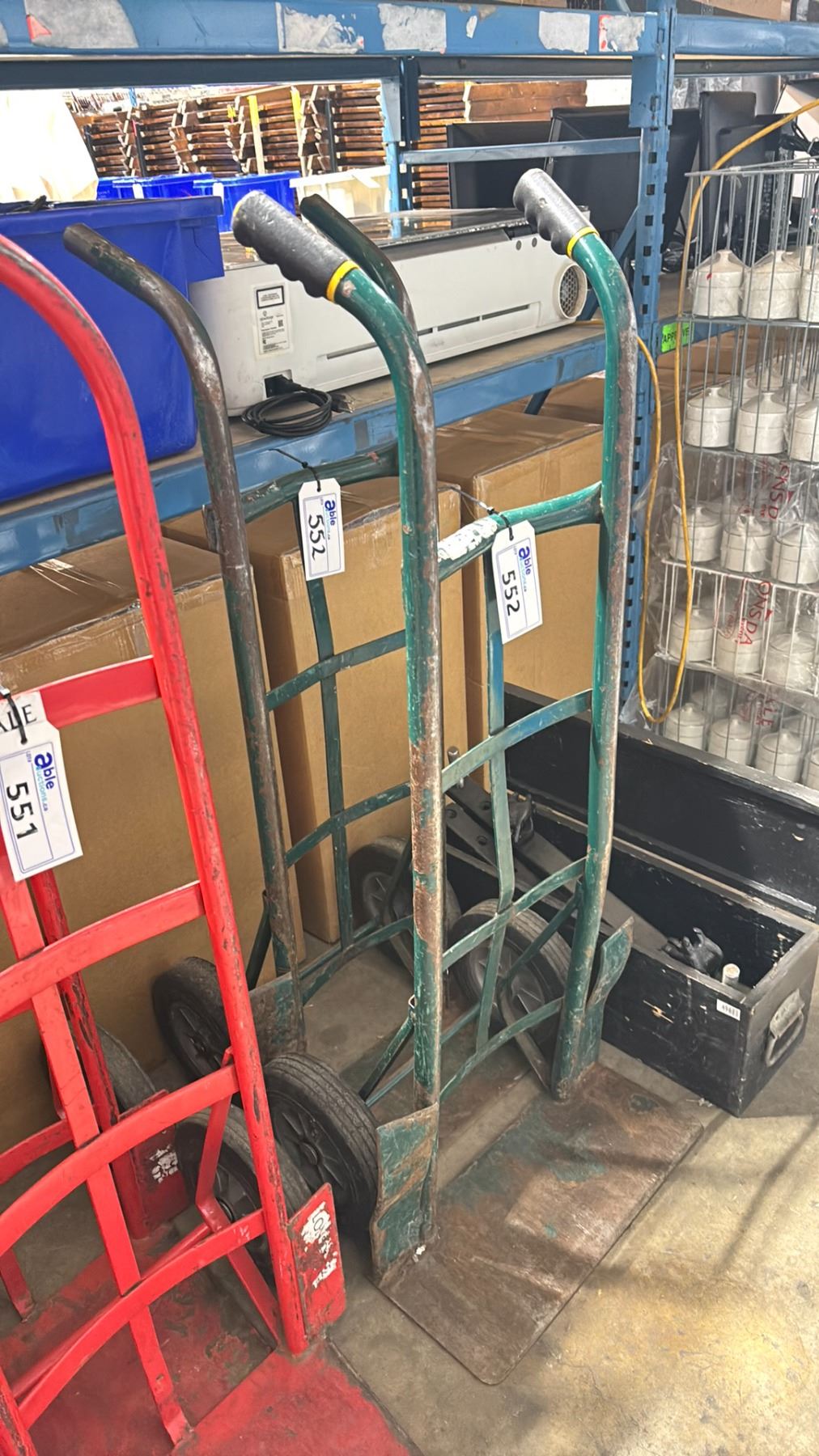 PAIR OF GREEN SOLID TIRE 2 WHEEL HAND TRUCKS