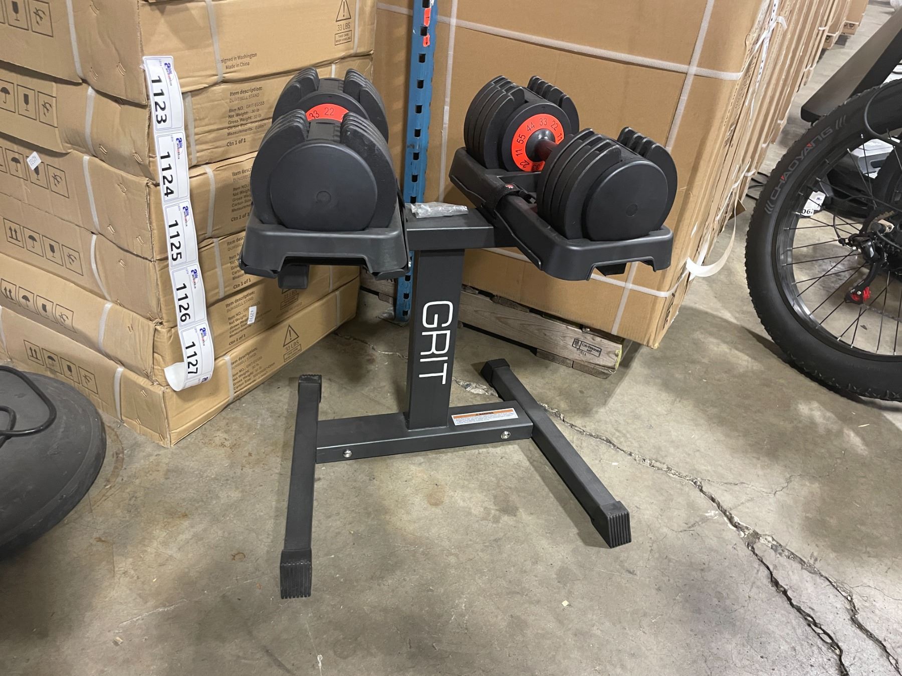 PAIR OF GRIT ADJUSTABLE WEIGHT DUMBBELLS WITH METAL STAND