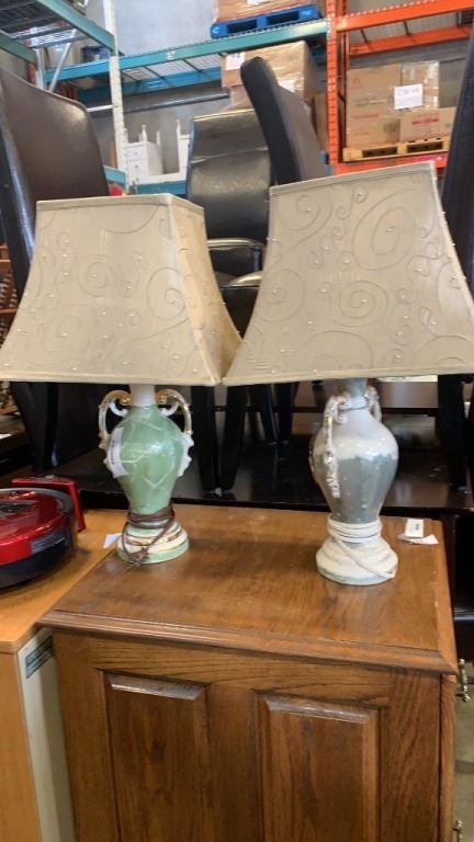 PAIR OF HAND PAINTED TABLE LAMPS WITH SHADES