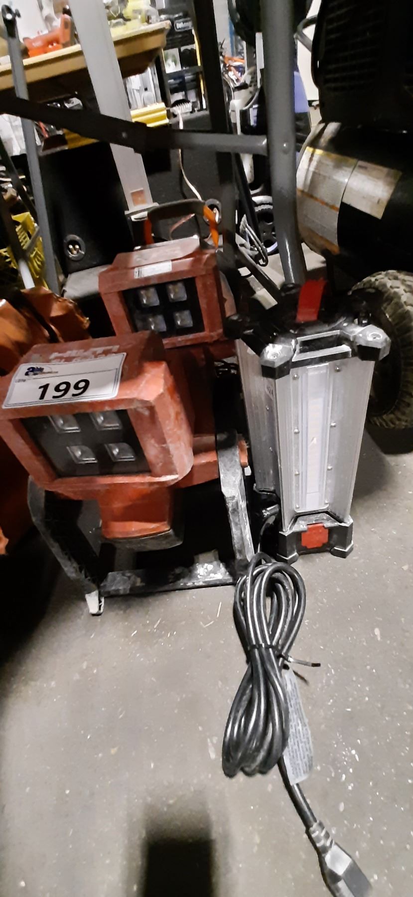 PAIR OF HILTI SL 6-A22 CORDLESS PORTABLE WORK LIGHTS AND HDX ELECTRIC PORTABLE WORK LIGHT
