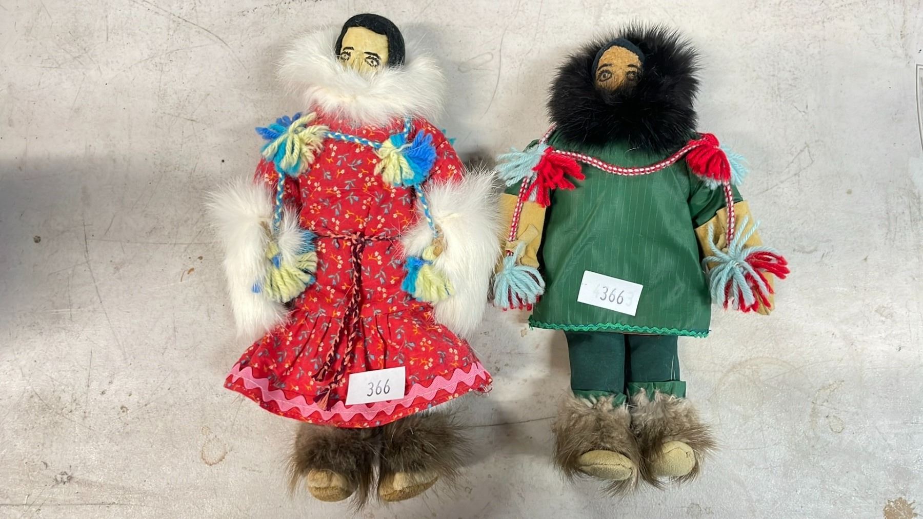 PAIR OF INUIT BOYS & GIRLS HANDMADE DOLLS CIRCA 1983