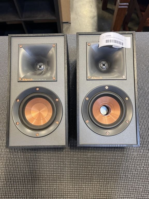 PAIR OF KLIPSCH R41SA 50W MODUAL SPEAKER, RETAIL $199, ONE IS MISSING CONE COVER
