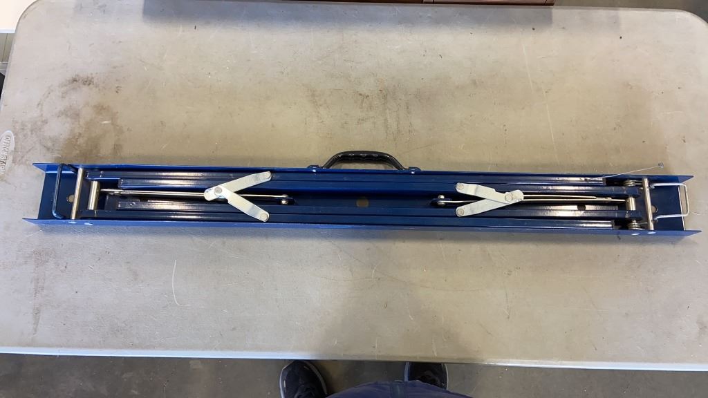 PAIR OF MASTERCRAFT FOLDING SAWHORSES AND SHOP SHELF