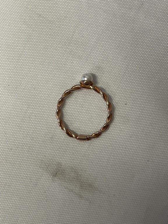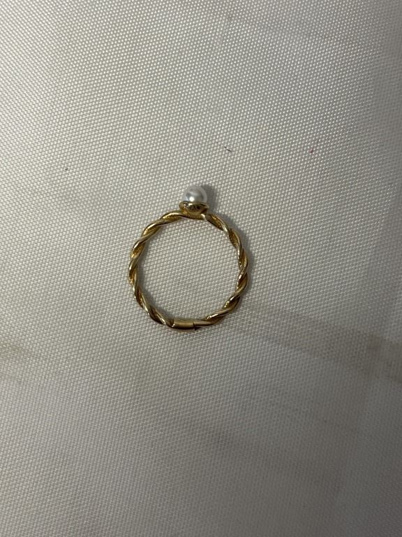 PAIR OF MATCHING GOLD W/ PEARL PINKY RINGS TWISTED DESIGN MARKED 925 EACH 5.5" RING SIZE