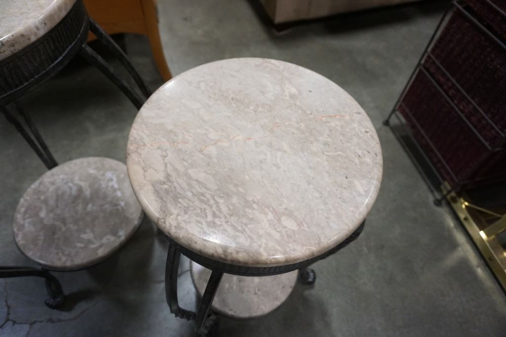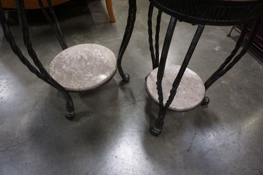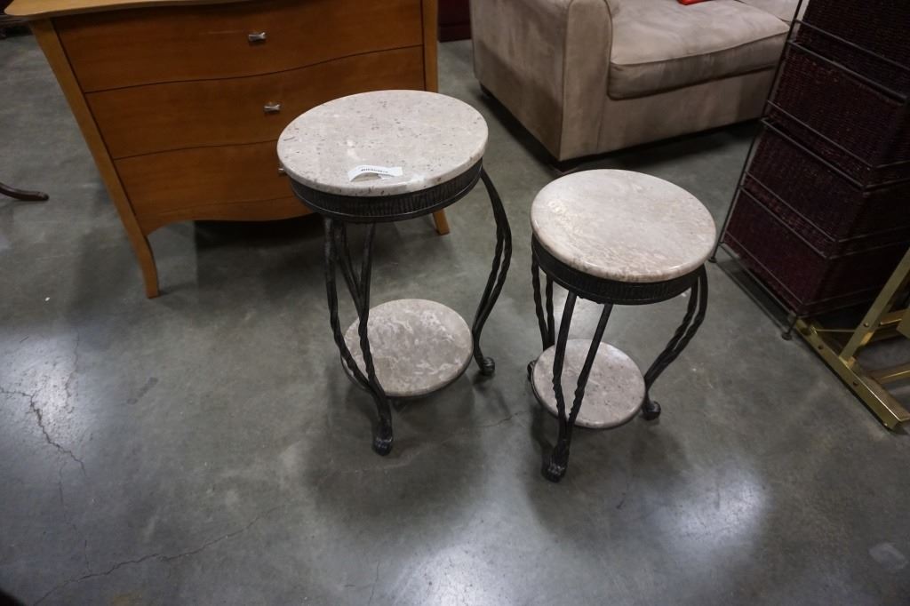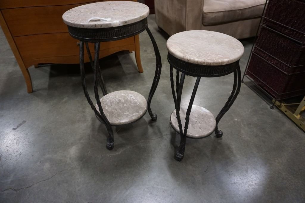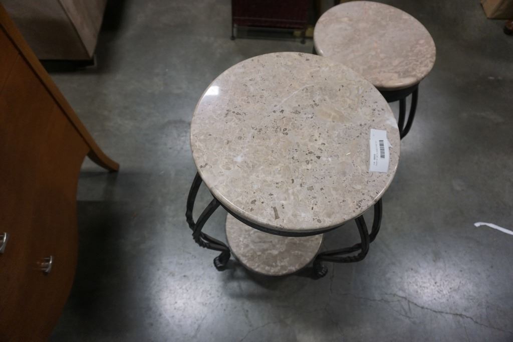 PAIR OF METAL BASE STONE TOP ENDTABLES