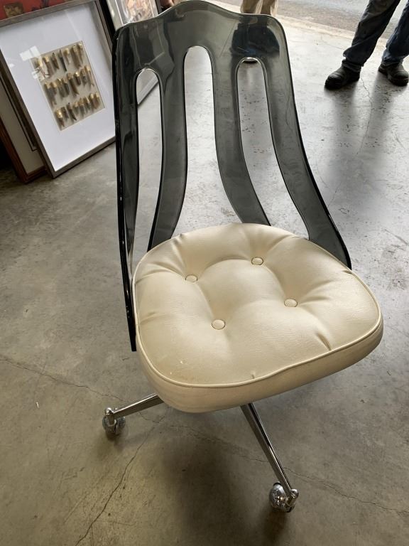 PAIR OF MID CENTURY LUCITE SWIVEL DINING CHAIRS