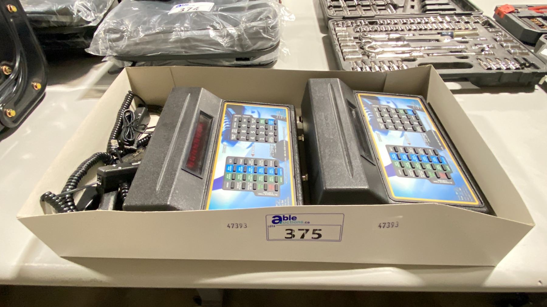 PAIR OF NEVCO MPCW-7 WIRELESS SCOREBOARD CONTROLLERS WITH POWER SUPPLY AND HANDHELD SWITCHES