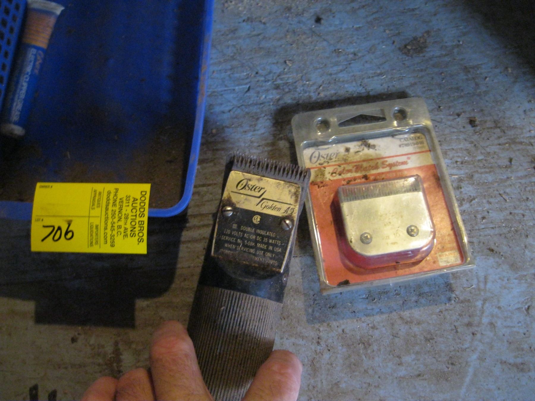 PAIR OF OSTER CLIPPERS WITH NEW BLADE, WHIP & HORSE BRUSH & DOG BALL