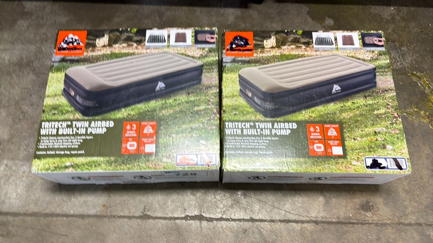 PAIR OF OZARK TRAILER TWIN AIR BEDS WITH BUILT IN PUMPS