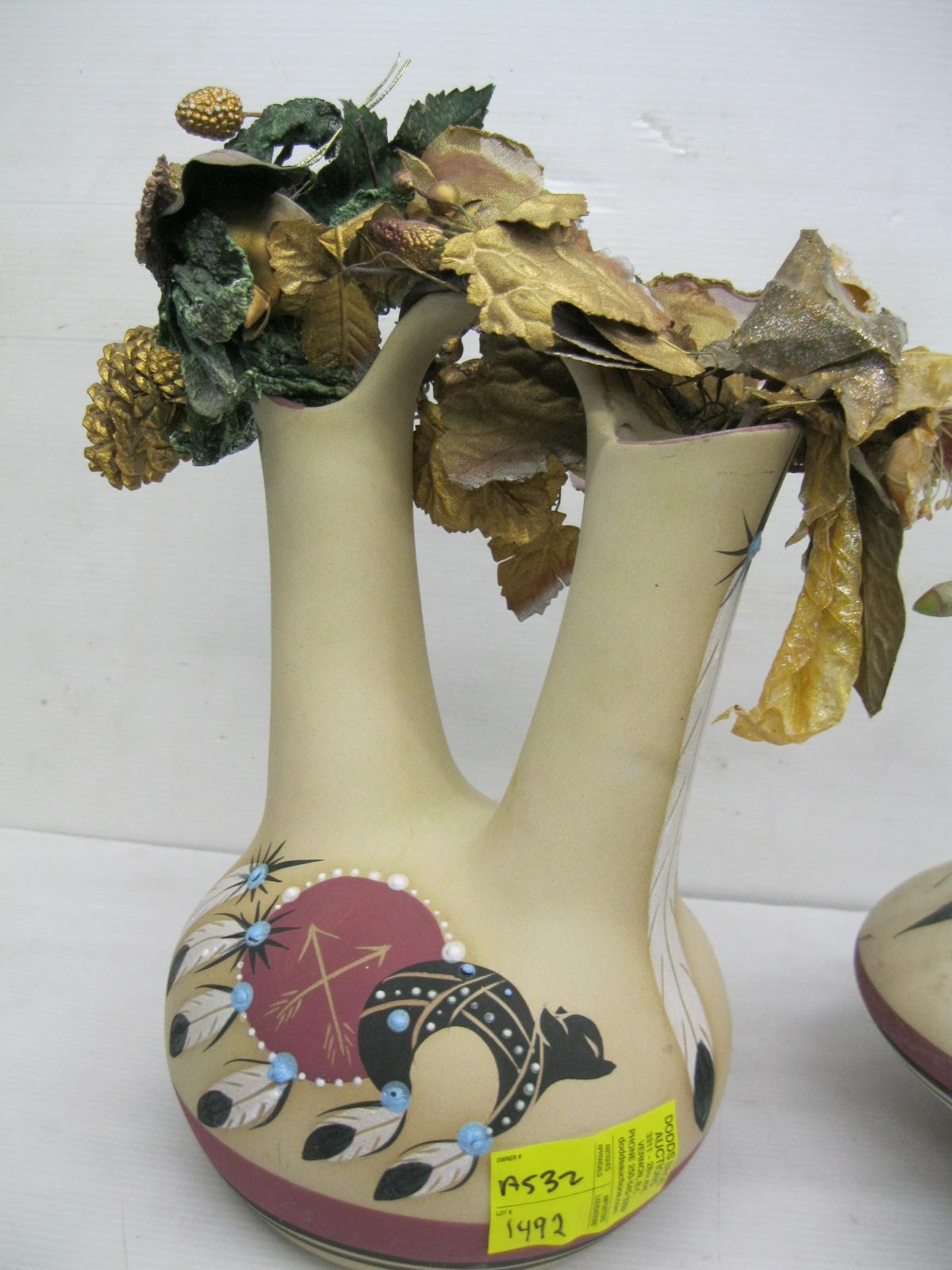 PAIR OF PAINTED POTTERY VASES