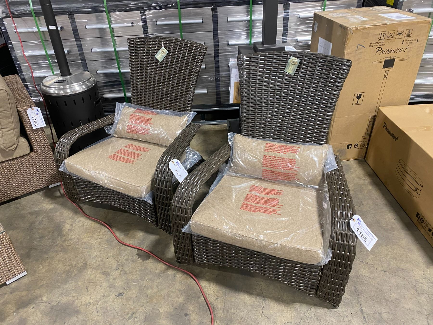 PAIR OF PATIO FLAIR BROWN PREMIUM MUSKOKA CHAIRS WITH CUSHIONS