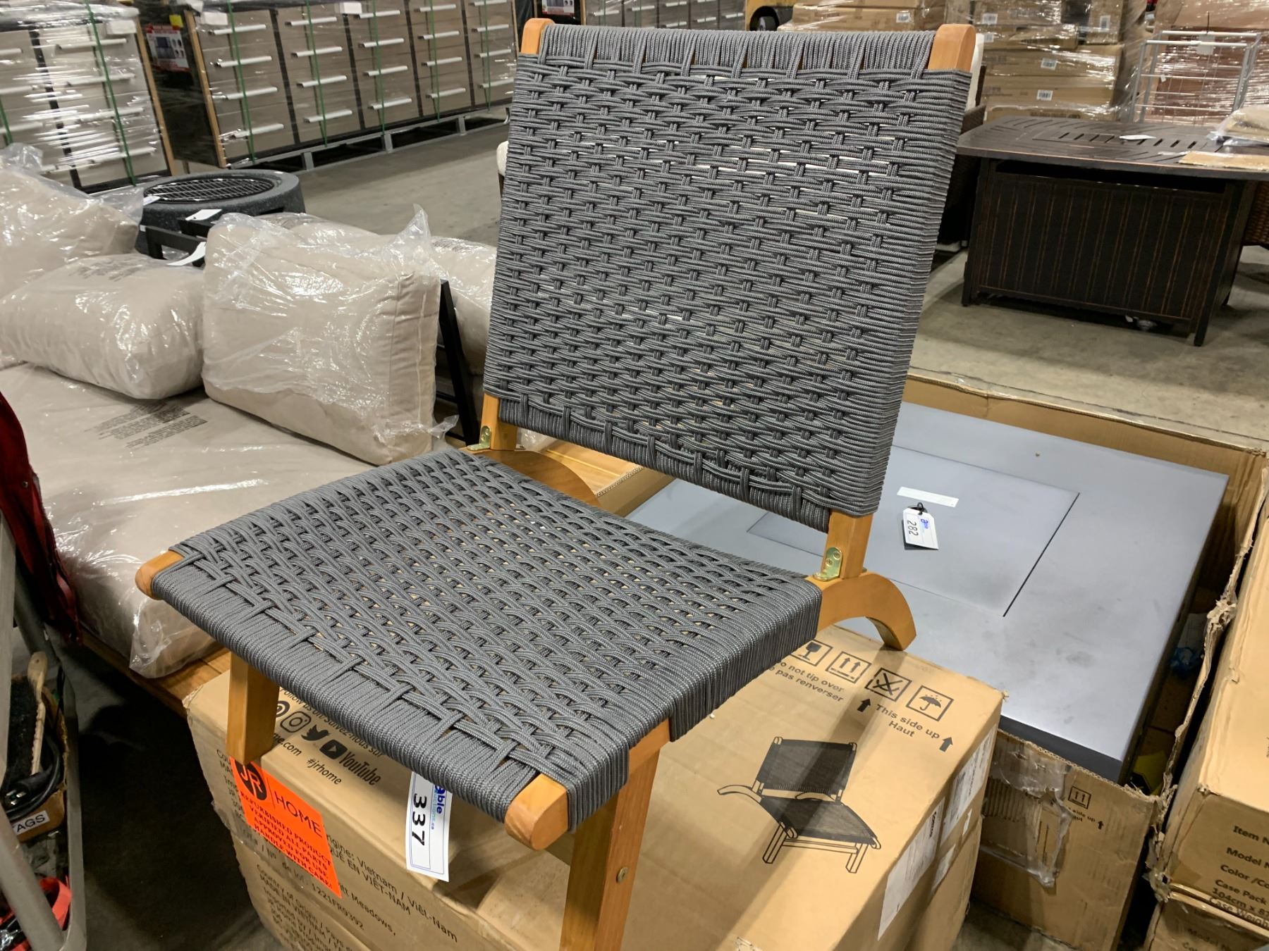 PAIR OF PATIOFLARE WOOD GRAIN & GREY COSTA RICA WOVEN OUTDOOR PATIO CHAIR **IN BOX**