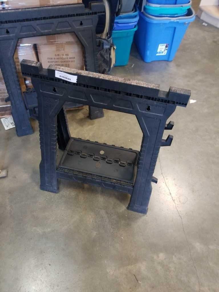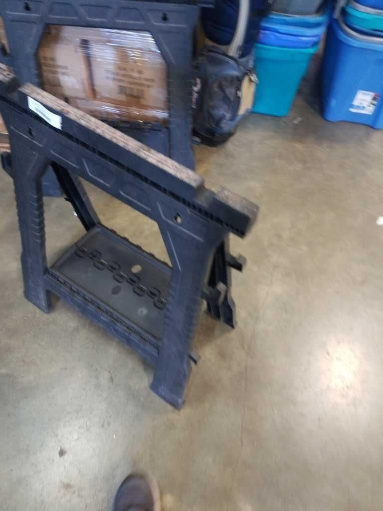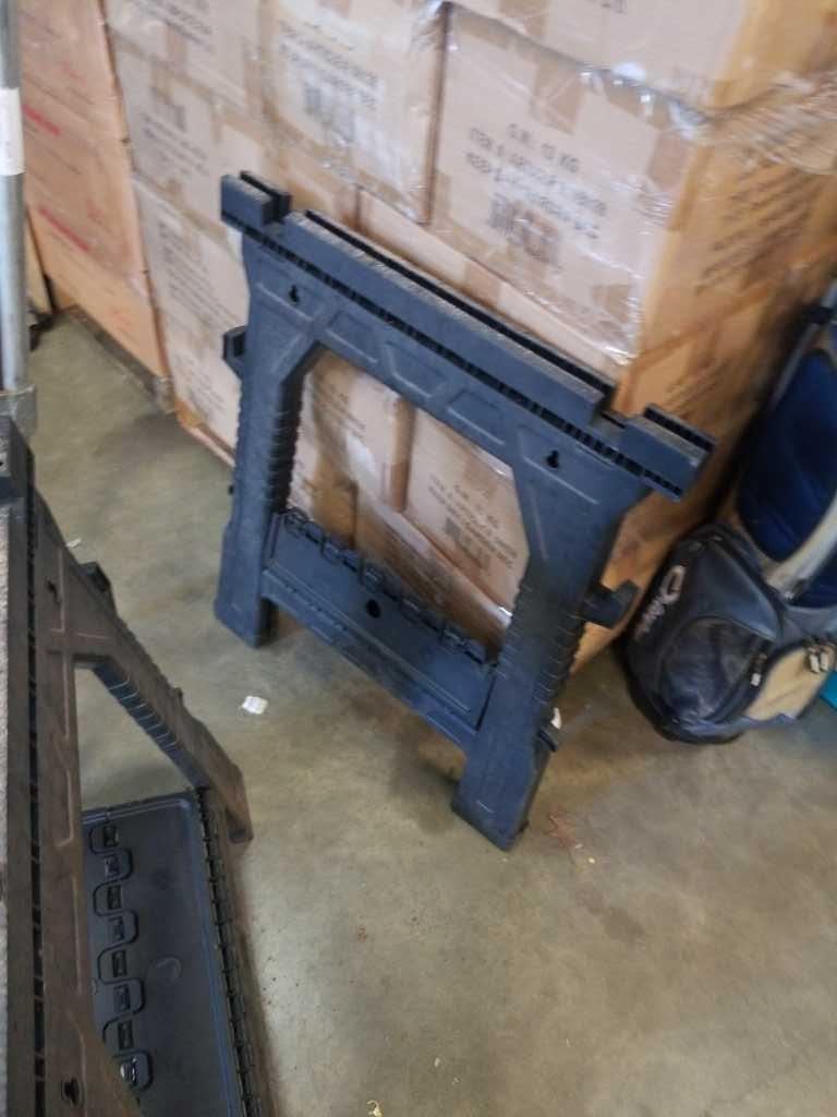 PAIR OF PLASTIC SAWHORSES AND LOAD BAR