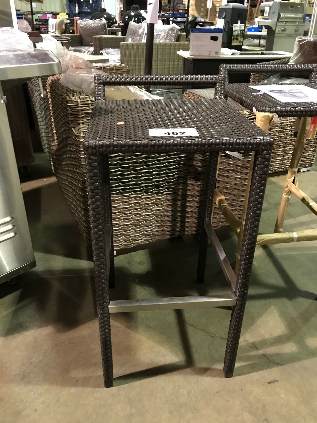 PAIR OF RATANA VERNON FN3524ILAB DARK RATTAN / STAINLESS STEEL OUTDOOR PATIO BAR CHAIRS MSRP $500