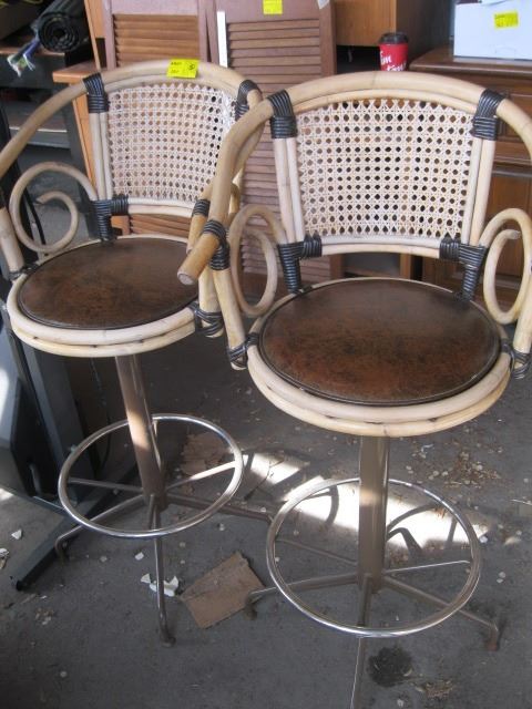 PAIR OF RATTAN SWIVEL BAR STOOLS