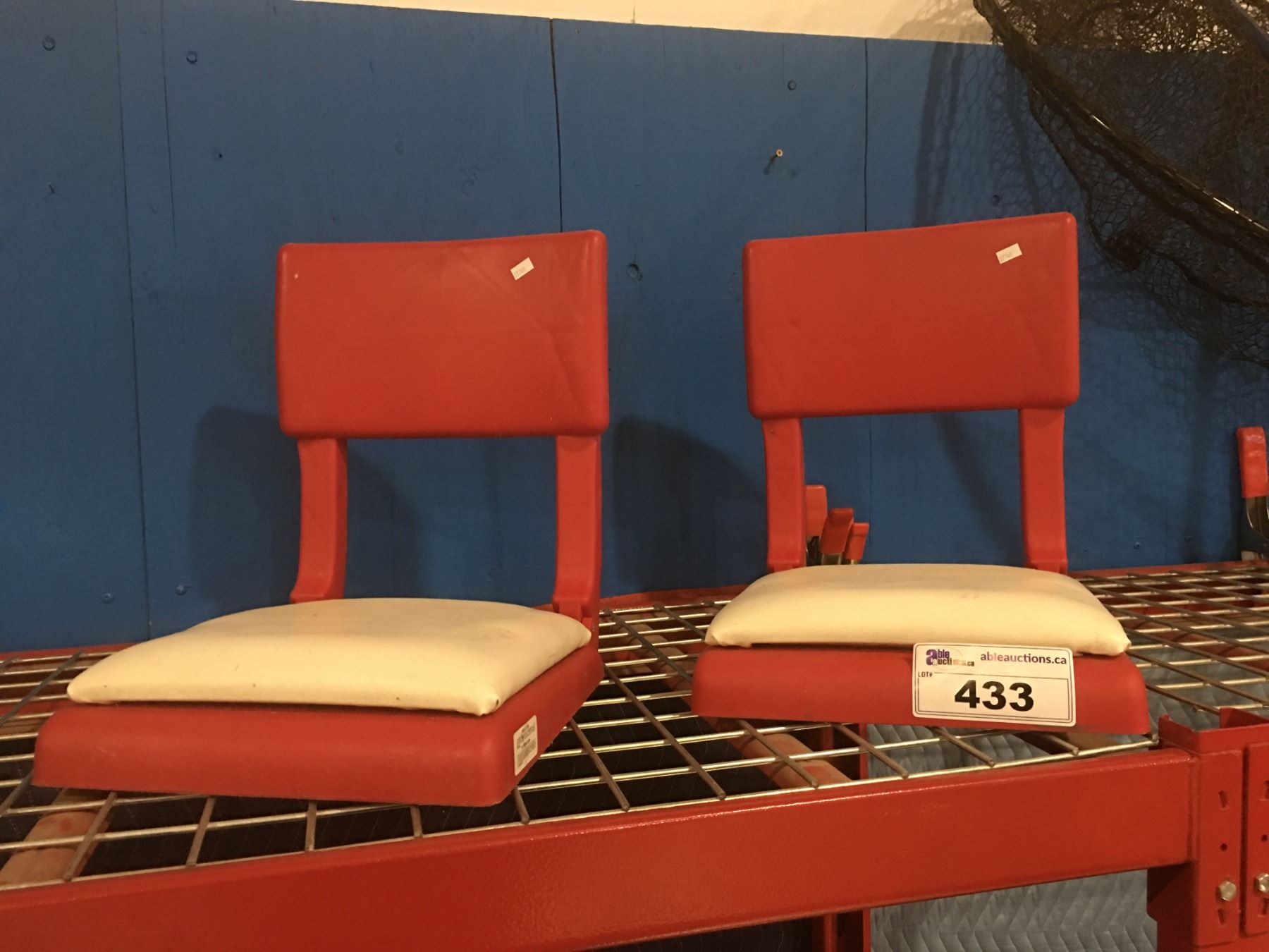 PAIR OF RED & WHITE FOLDING PORTABLE SEATS