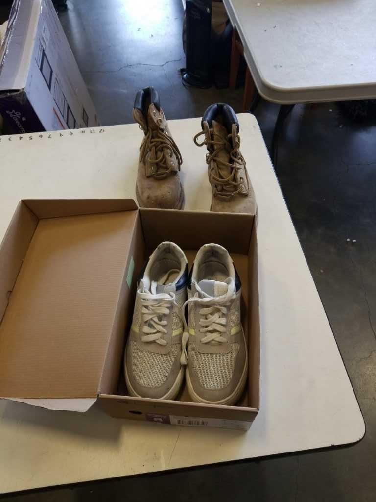 PAIR OF SHOES SIZE 8 AND SNAP ON BOOTS SIZE 8