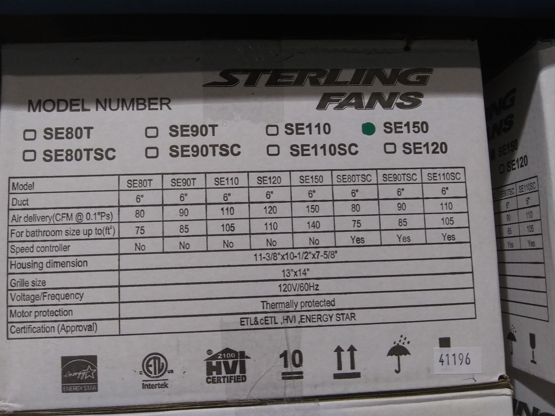 PAIR OF STERLING FANS SE150 ULTRA SILENT HIGH PERFORMANCE HVAC CEILING EXHAUST FANS