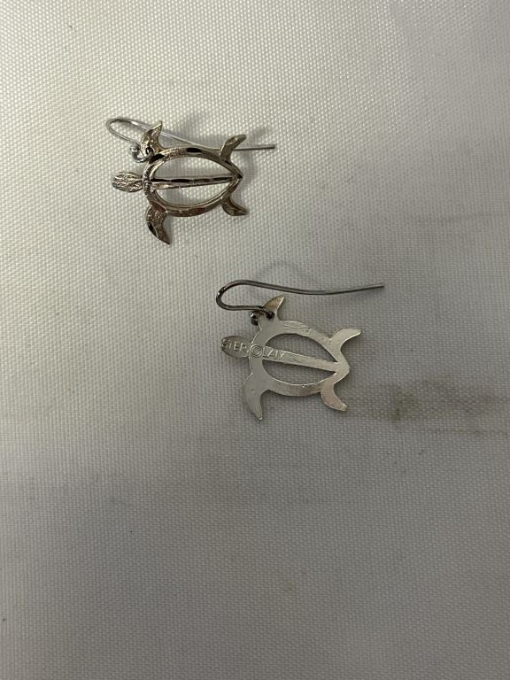 PAIR OF STERLING SILVER TURTLE EARRINGS MARKED STER (C) LAM