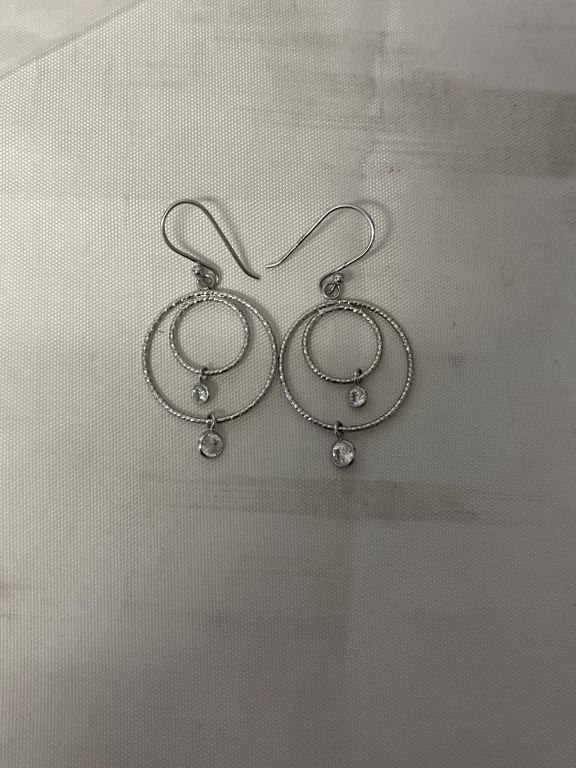 PAIR OF STERLING SILVER W/ CZ STONES DANGLE EARRINGS MARKED 925