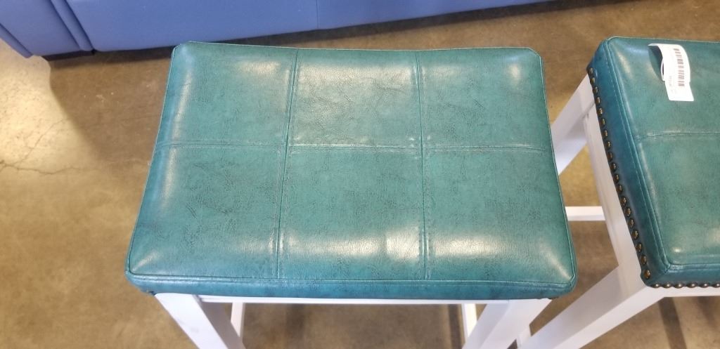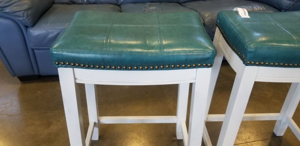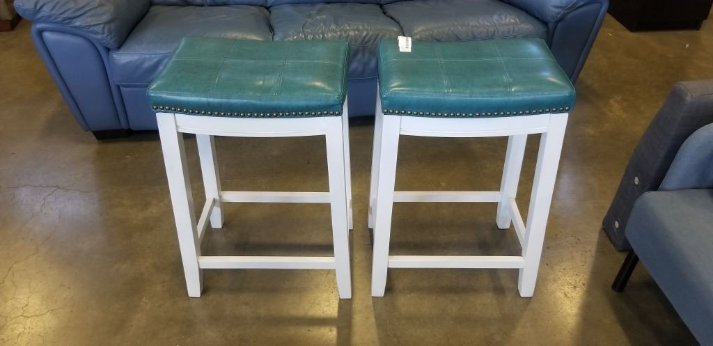 PAIR OF WHITE AND BLUE BARSTOOLS