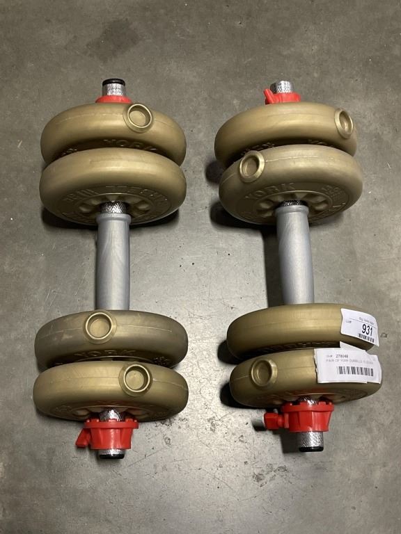 PAIR OF YORK DUMBELLS, 10 LB EACH