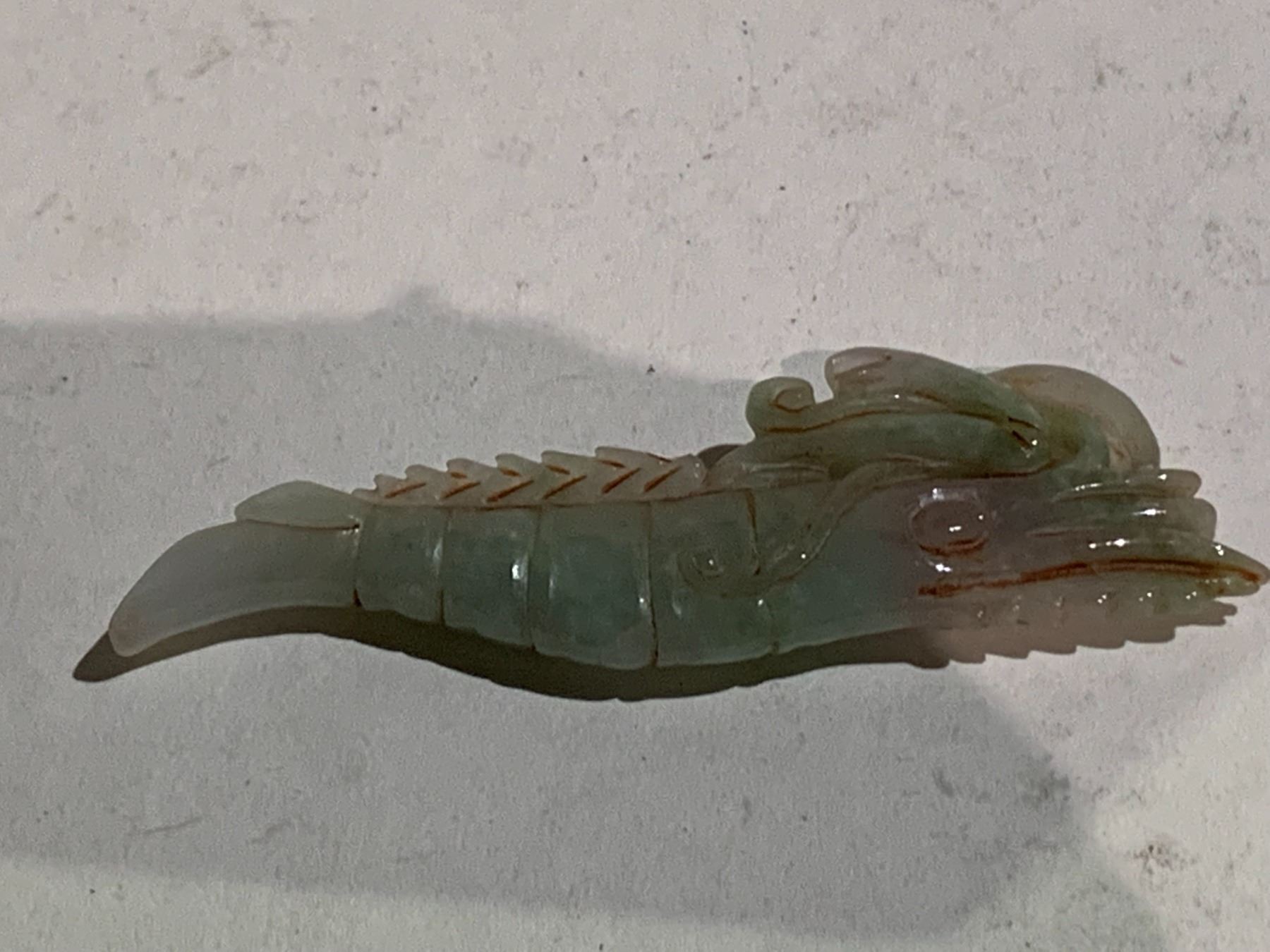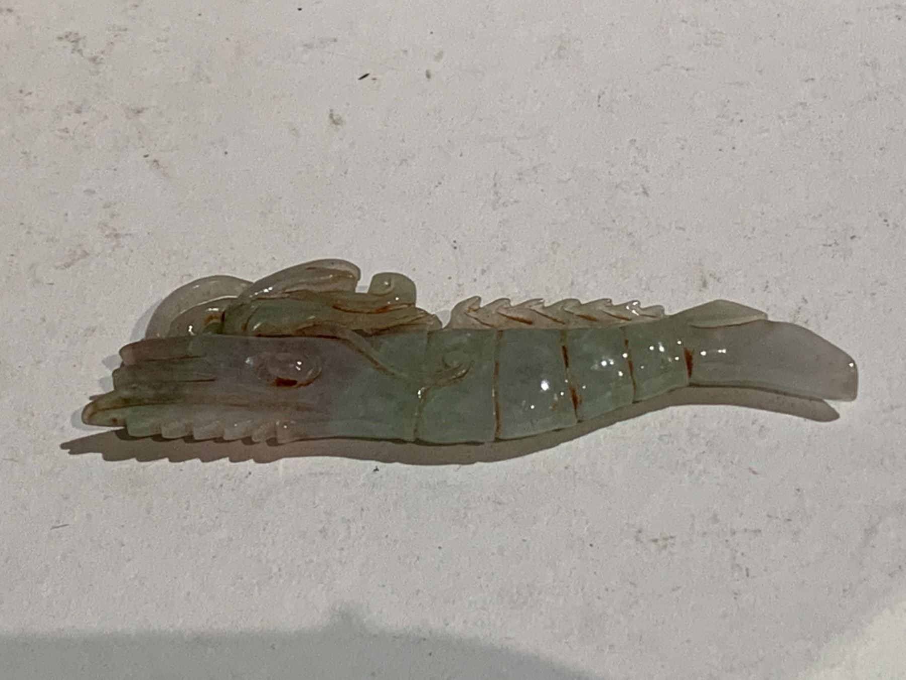 PALE WHITE ICY JADEITE CARVING OF SHRIMP