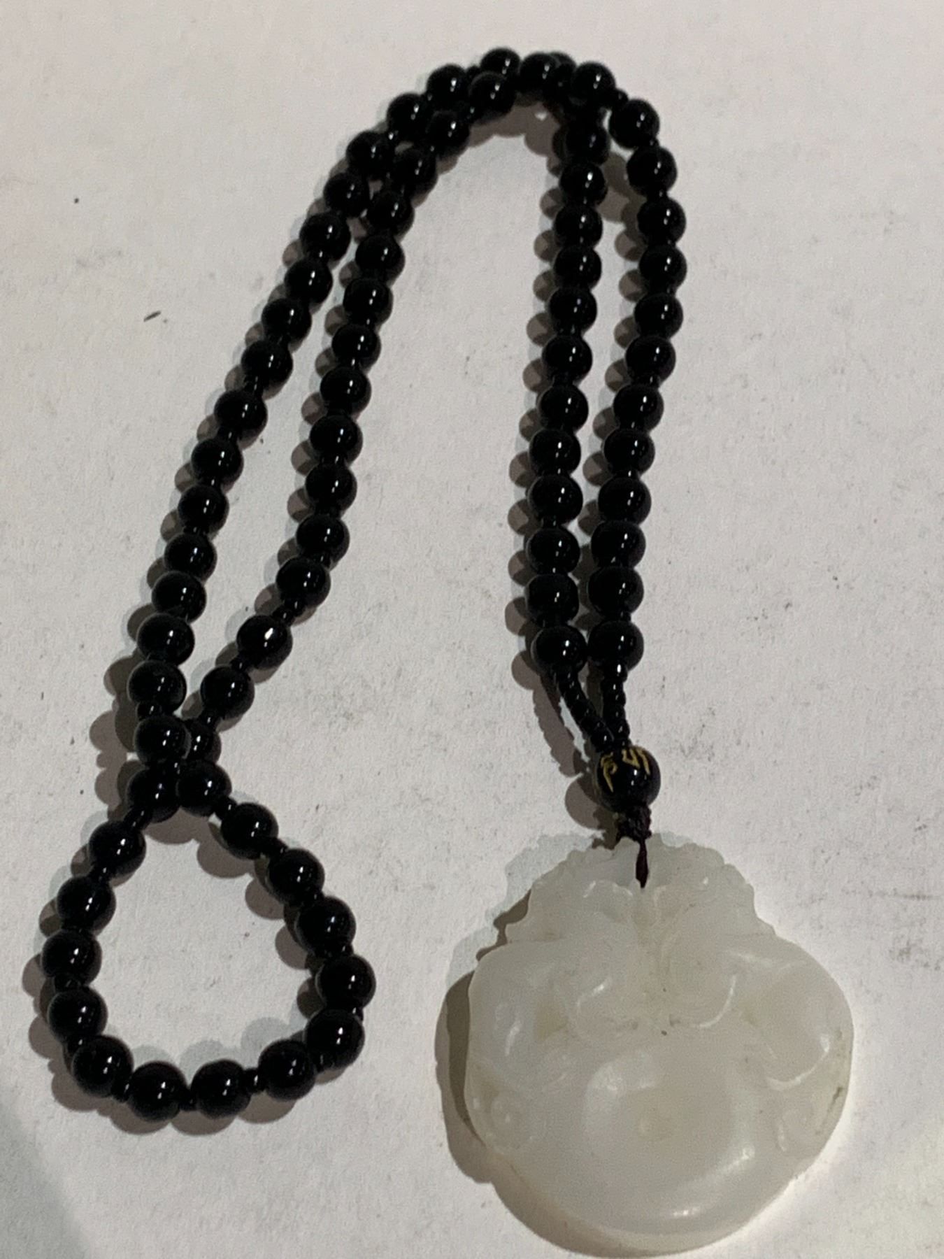 PALE WHITE JADE 'WHEEL OF WEALTH' PENDANT