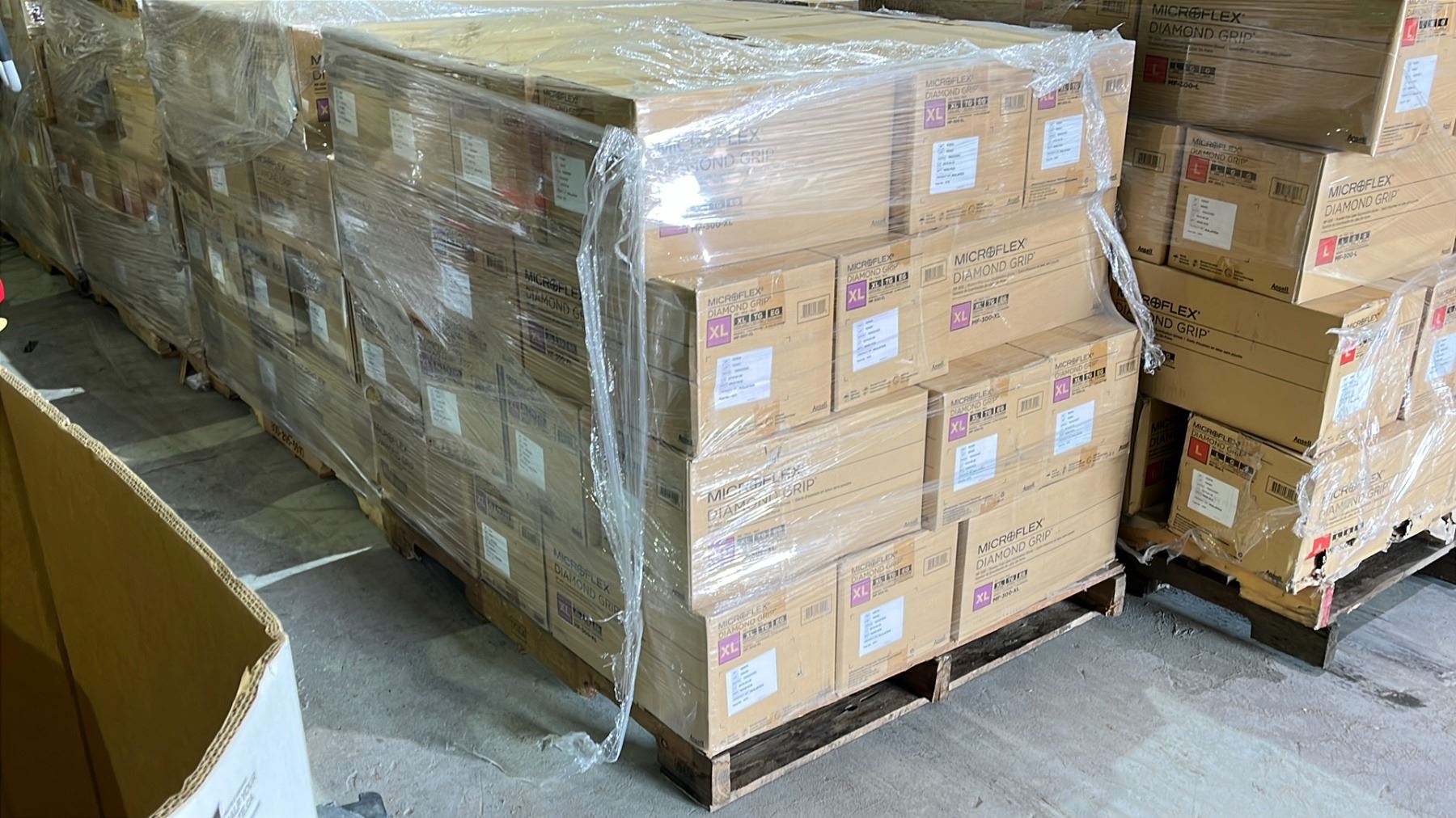 PALLET OF 36 BOXES OF EXTRA LARGE MICROFLEX DIAMOND GRIP LATEX GLOVES