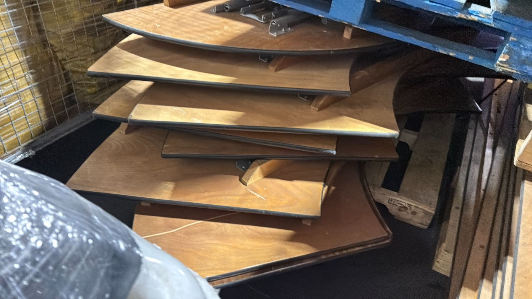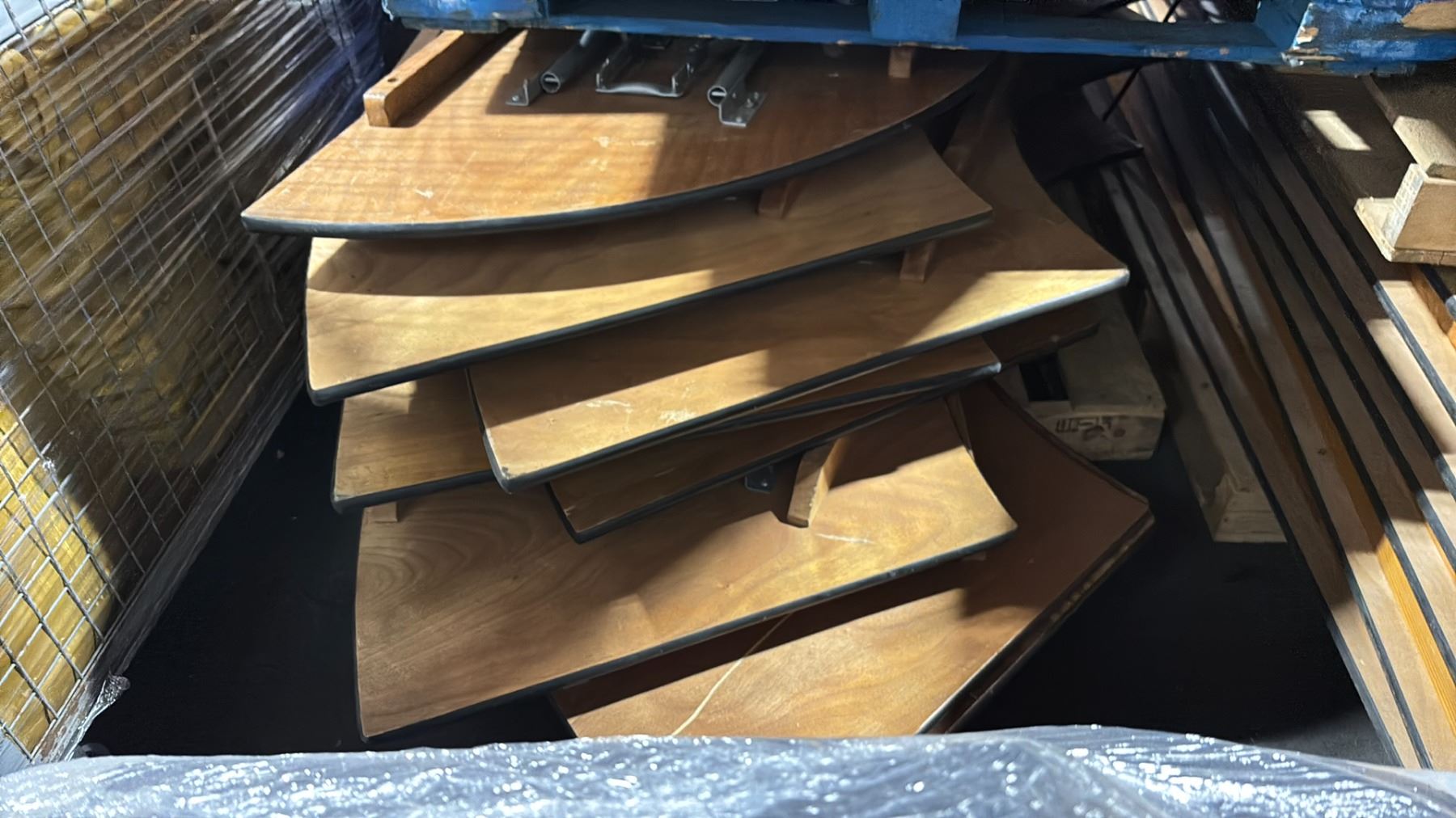 PALLET OF 5 WOODEN CRESCENT SHAPED COMMERCIAL EVENT / BANQUET FOLDING TABLES *MUST TAKE ALL*