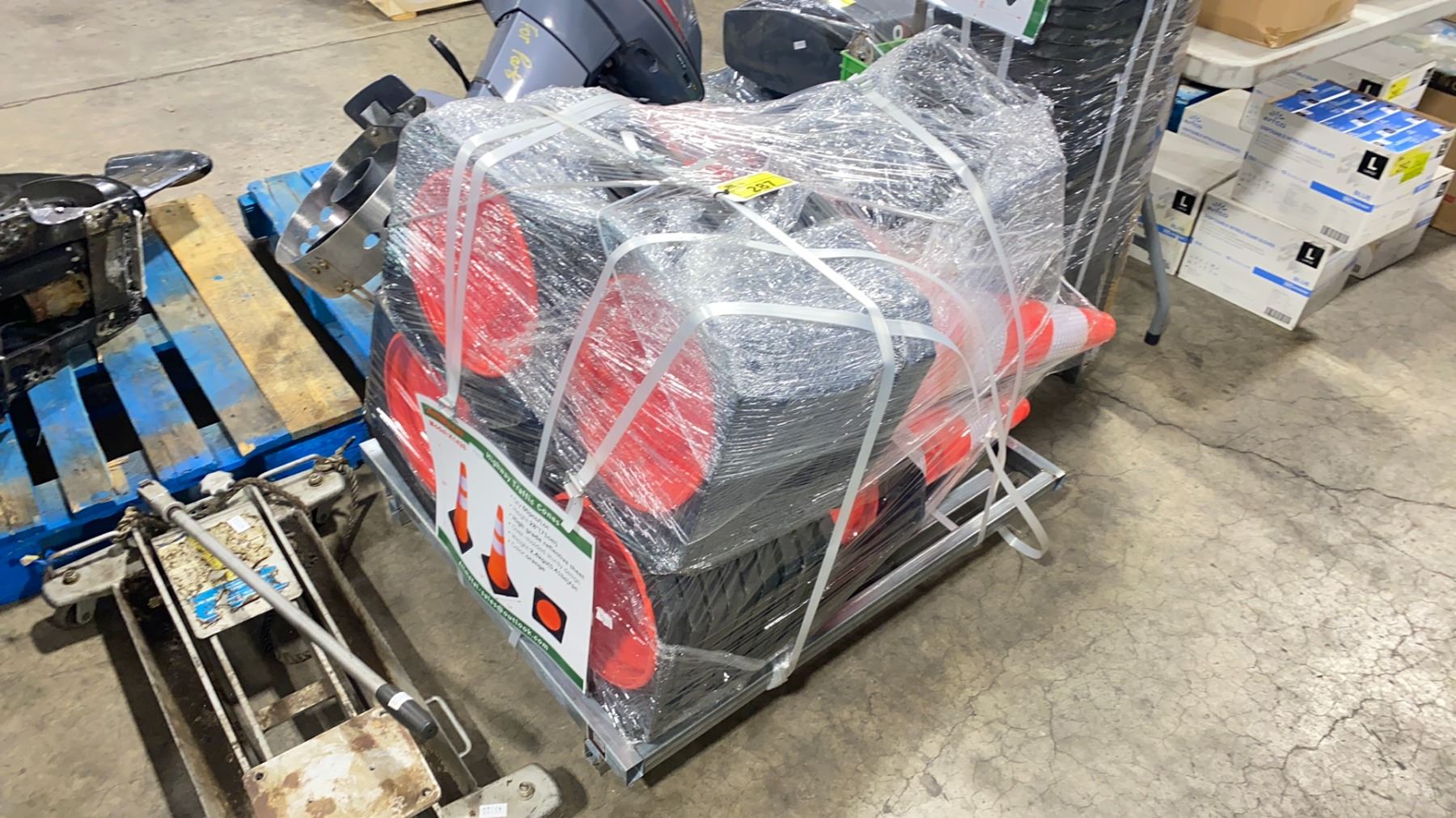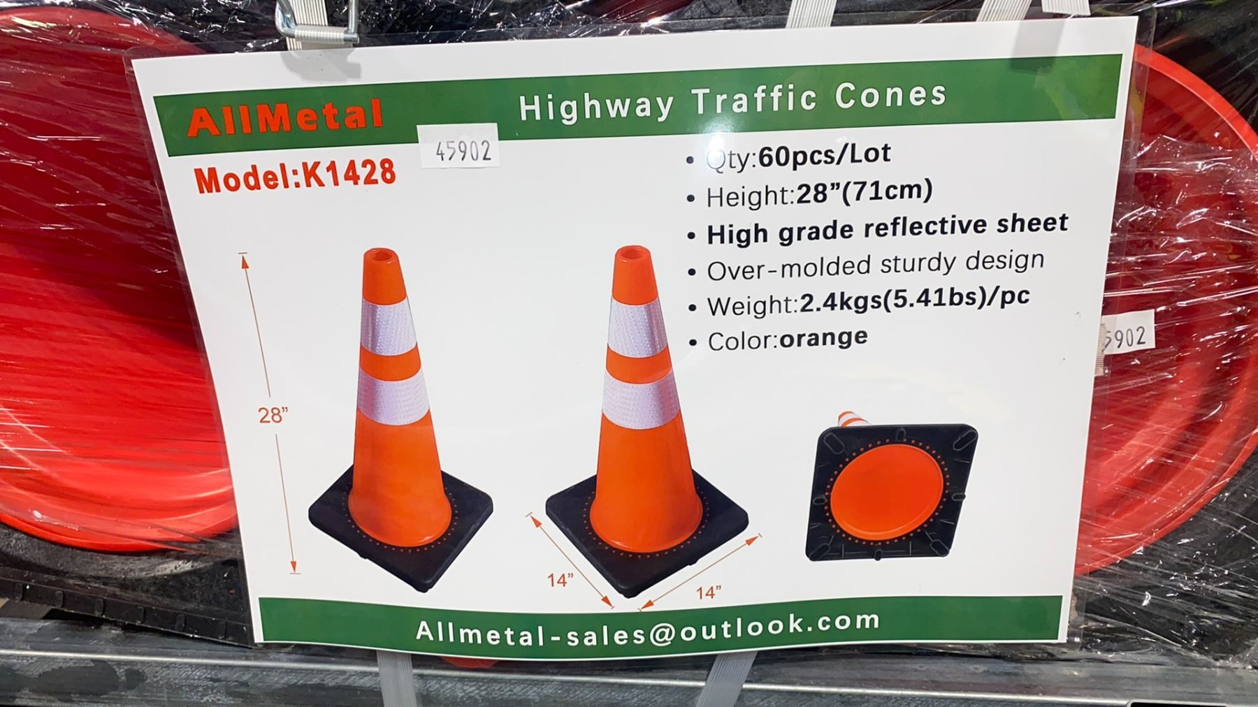 PALLET OF 60 HIGHWAY TRAFFIC CONES WITH HIGH GRADE REFLECTIVE SHEETS